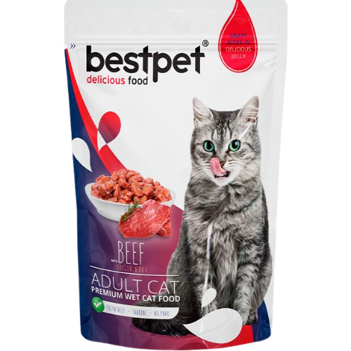 Sachet de alimento húmedo premium Bestpet para gatos sabor carne 85 g